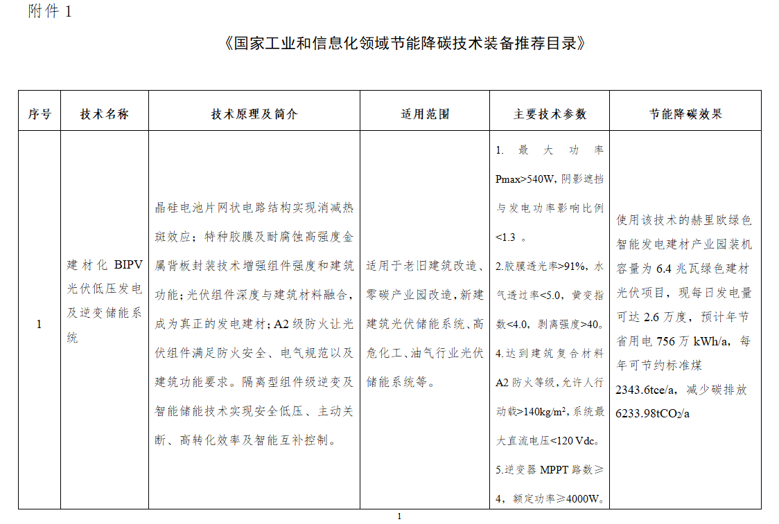在绿色转型的关键时期,每一步科技创新都可能成为有助于可持续开展的关键力量。4月30日,工业和信息化部正式公示了《国家工业和信息化领域节能降碳技术装备推荐目录(2024年版)》,旨在推广高效节能、低碳环保的先进技术装备,助力我国工业体系加速向绿色低碳转型。在这份权威推荐目录中,EVO视讯官网新能源有限公司凭借其在建材化光伏系统(BIPV)领域的卓越贡献与创新成果,荣耀上榜,彰显了公司在节能降碳技术领域的领先地位。